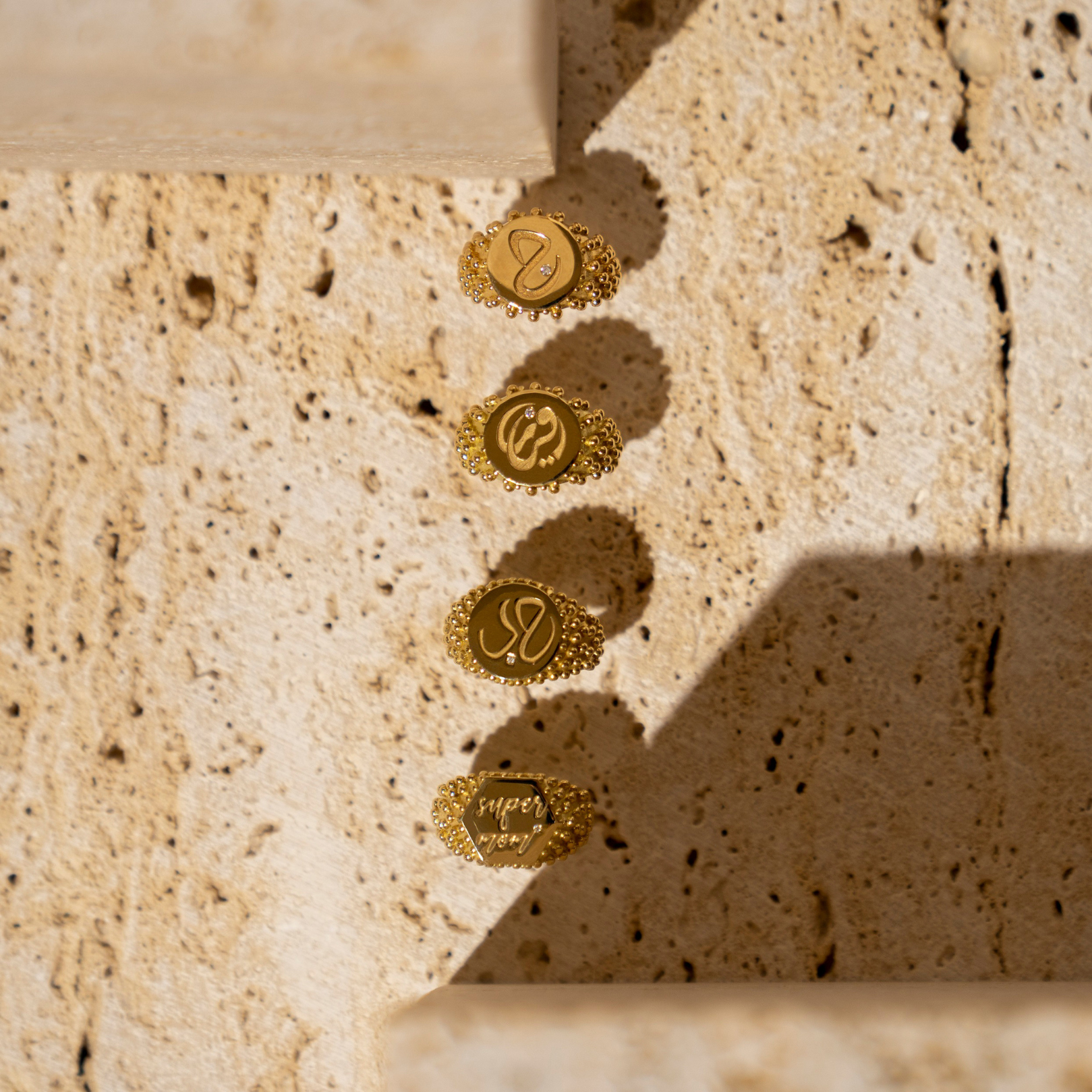 Immortalize a moment, a feeling, or a sentiment with Shaikha Fakhro’s signature signet rings