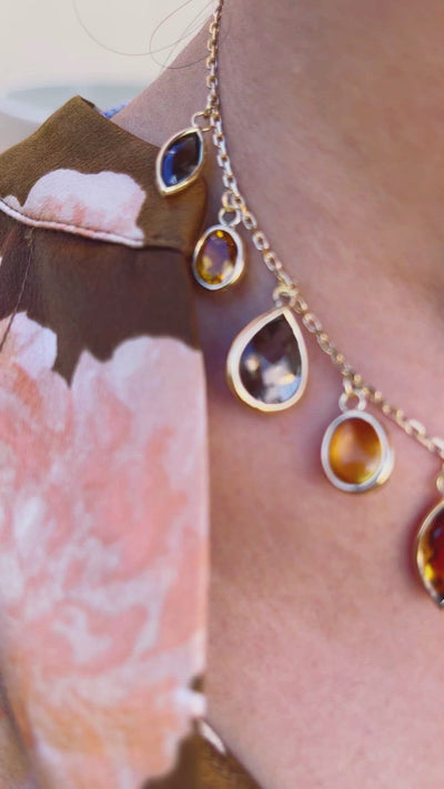 The Vintage Topaz Necklace; a balanced curation of topaz stones, together forming rich earthy hues. Each stone strikingly highlighted in a gold setting. My favourite time-travel piece to the fifties!